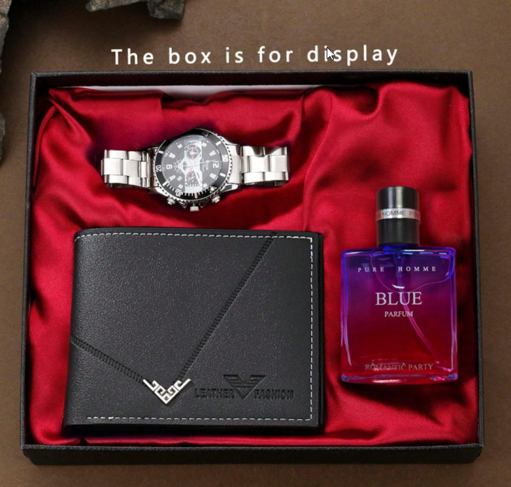 • المحتوى: ساعة + محفظة + قلم + عطر + ميدالية