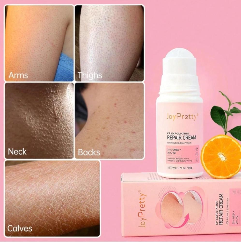 كريم للجسم من جوي بريتي لإزالة الجلد الخشن والمسام المسدودة يعالج مشكلة "جلد الوزة" بتركيبة فعالة تحتوي على اليوريا وفيتامين C لتقشير البشرة وتنعيمها بعمق ومنحها مظهراً صحيًا ومتجانسًا.
